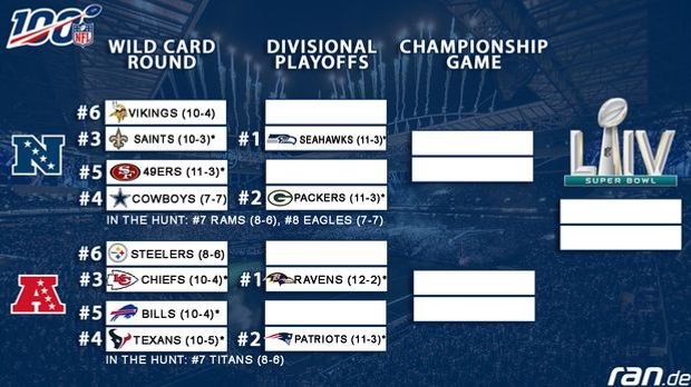 Every january a series of matches are played to determine which two teams reach the super bowl. Patriots remain on the outside looking in after week 10. Deals automatically ranked from best to worst. Nfl playoff predictor (nfl season picker) lets you pick every game of the nfl season via a season schedule, and will show you the seeds for the afc and nfc. The tennessee titans and kansas city chiefs will compete in the afc championship to represent the conference in super bowl 54, while the green.
